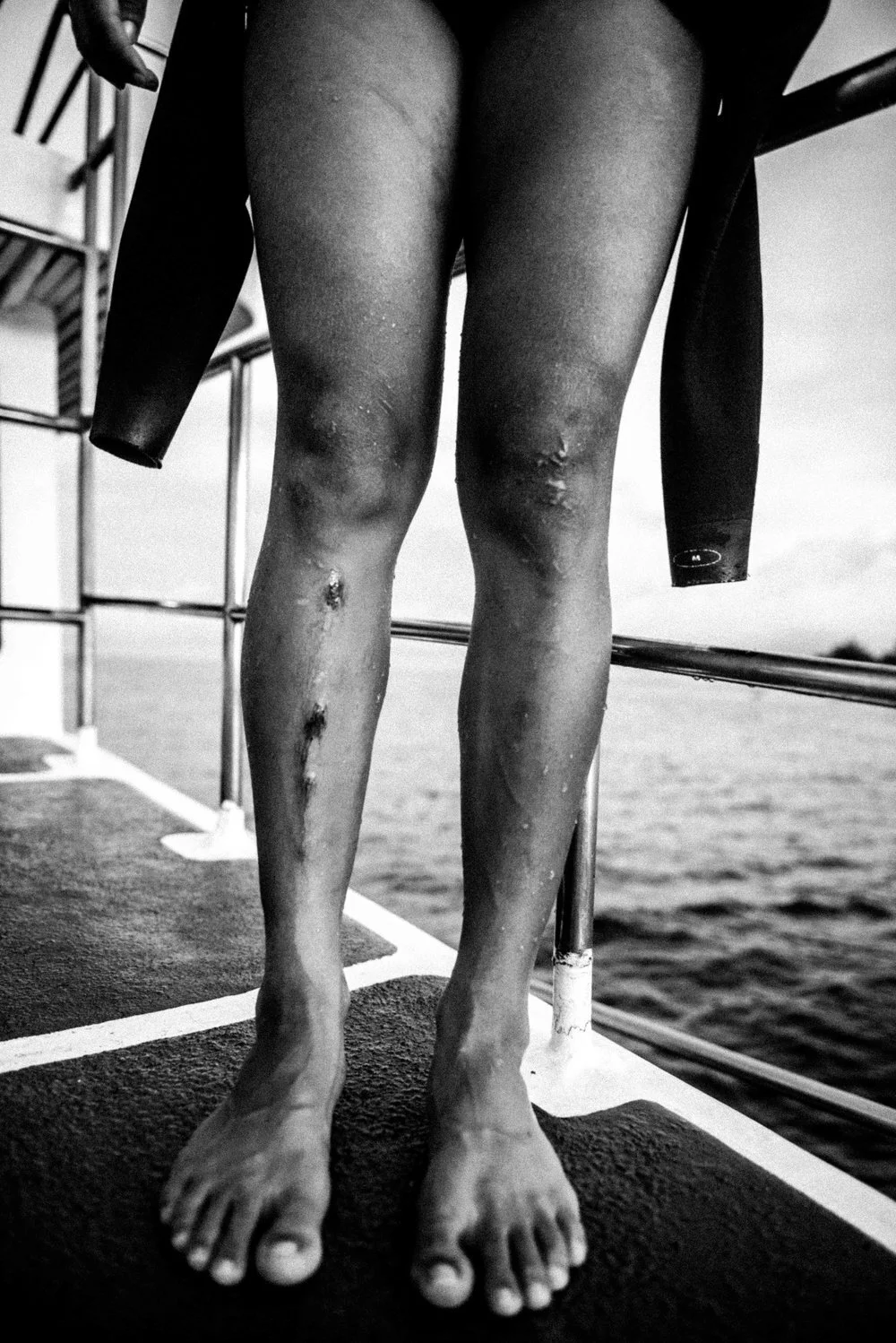 We motored through a thunder and lightning storm. With no life vests on board, I spent the next 10 hours downing ginger tablets and hugging my swim fins.